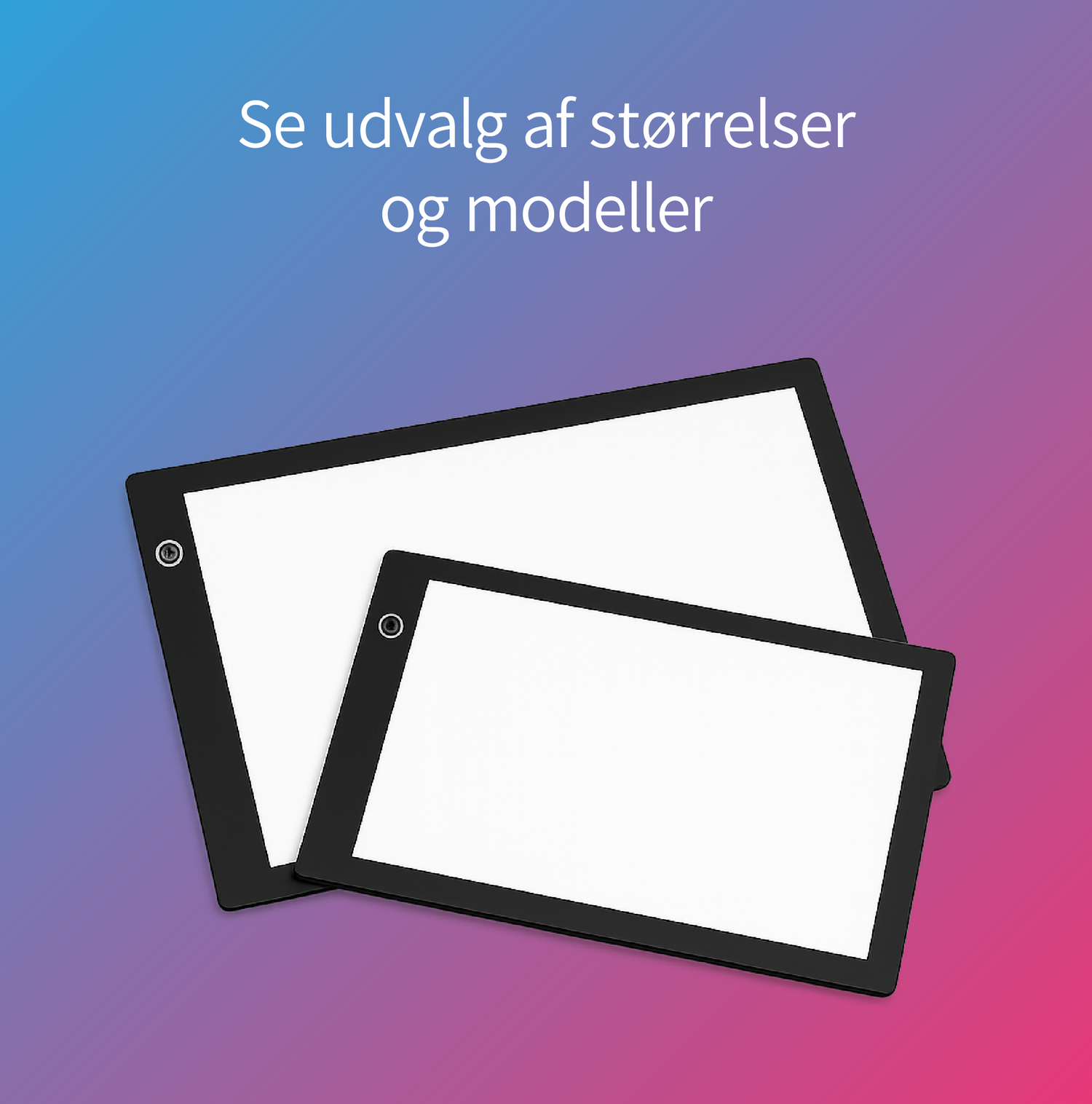 Gør dine idéer lyslevende med vores LED lysplader i flere størrelser og modeller. Uanset om du tegner, designer, laver diamond painting eller arbejder med mal-med-prikker, finder du den perfekte lysplade til dit behov her.